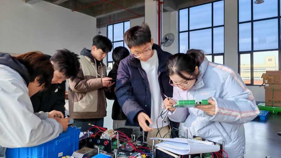 在飒智智能科技有限公司,学校天择书院选送的4位同学亲手“解剖”复杂的AMR(智能移动机器人),从书本理论跨越到真实电路。曾觉得《电工电子》课程“味同嚼蜡”的吕奕霖同学,在现场对电路产生了浓厚兴趣,他感慨:“也许这就是实践的意义。”